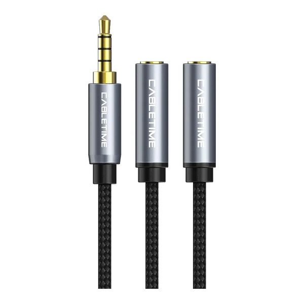Кабель Cabletime Audio 3.5mm M 3pin - 2x3.5mm F 0.2 м Black Metal Type, 3 pin, з підтримкою мікрофона, стерео (CF14B) - можна використовувати на будь-якому портативному пристрої, який використовує 3,5 мм jack. Дозволяє використовувати старіші аудіоаксесуари з новими комп'ютерами та гаджетами. З його допомогою можна підключити мікрофон, а також зовнішні динаміки з окремими штекерами. Спеціально для гарнітур із мікрофоном