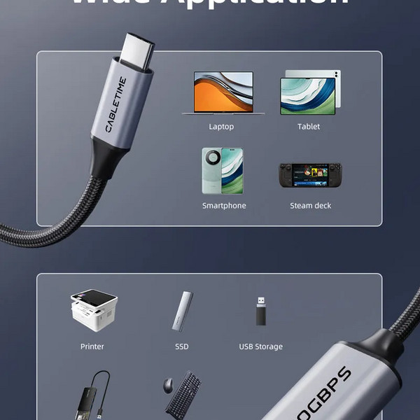 Кабель Cabletime USB 3.2 Type-C Male to USB 3.2 Type-A Female, 0.5 m, 10Gbs, Black (CP62G)