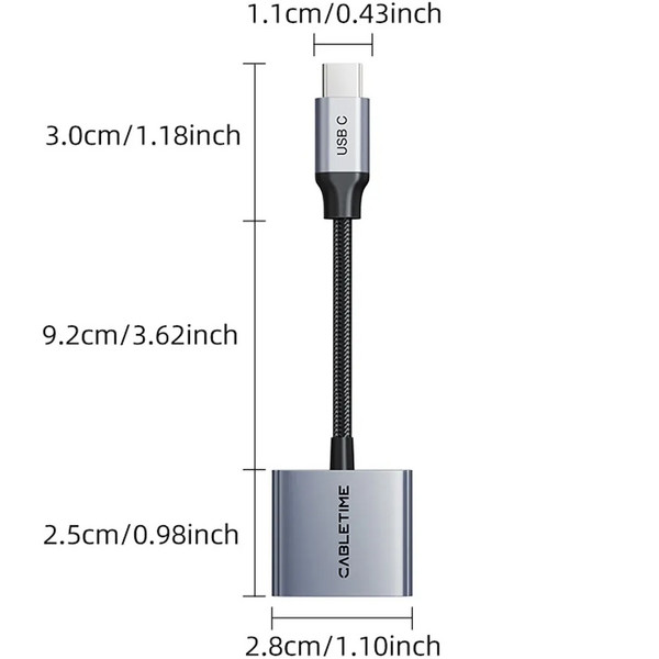 Перехідник Cabletime USB Type-C (M) - x2 Type-C (F) PD60W, 0.15м (CPA2G)